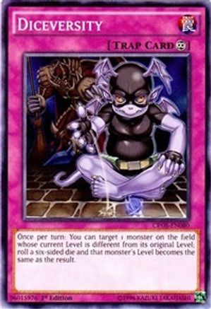 Once per turn: You can target 1 monster on the field whose Level is different from its original Level; roll a six-sided die, and that monster's Level becomes equal to the result.