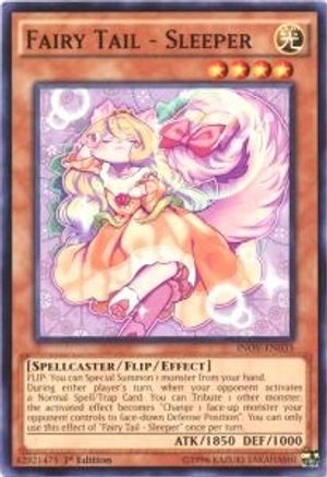During either player's turn, when your opponent activates a Normal Spell/Trap Card: You can Tribute 1 other monster; the activated effect becomes "Change 1 face-up monster your opponent controls to face-down Defense Position". You can only use this effect of "Fairy Tail - Sleeper" once per turn.